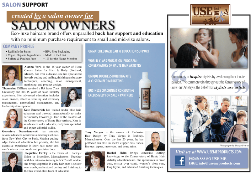 Examples of my social media marketing, print and web design, copywriting, marketing collateral, branding, and ad campaign concepts for Use Me! Refill. Reuse. Repeat. Many of these items have been featured in hair salons across the country, national trade magazines, and throughout several high profile social media platforms and websites.
